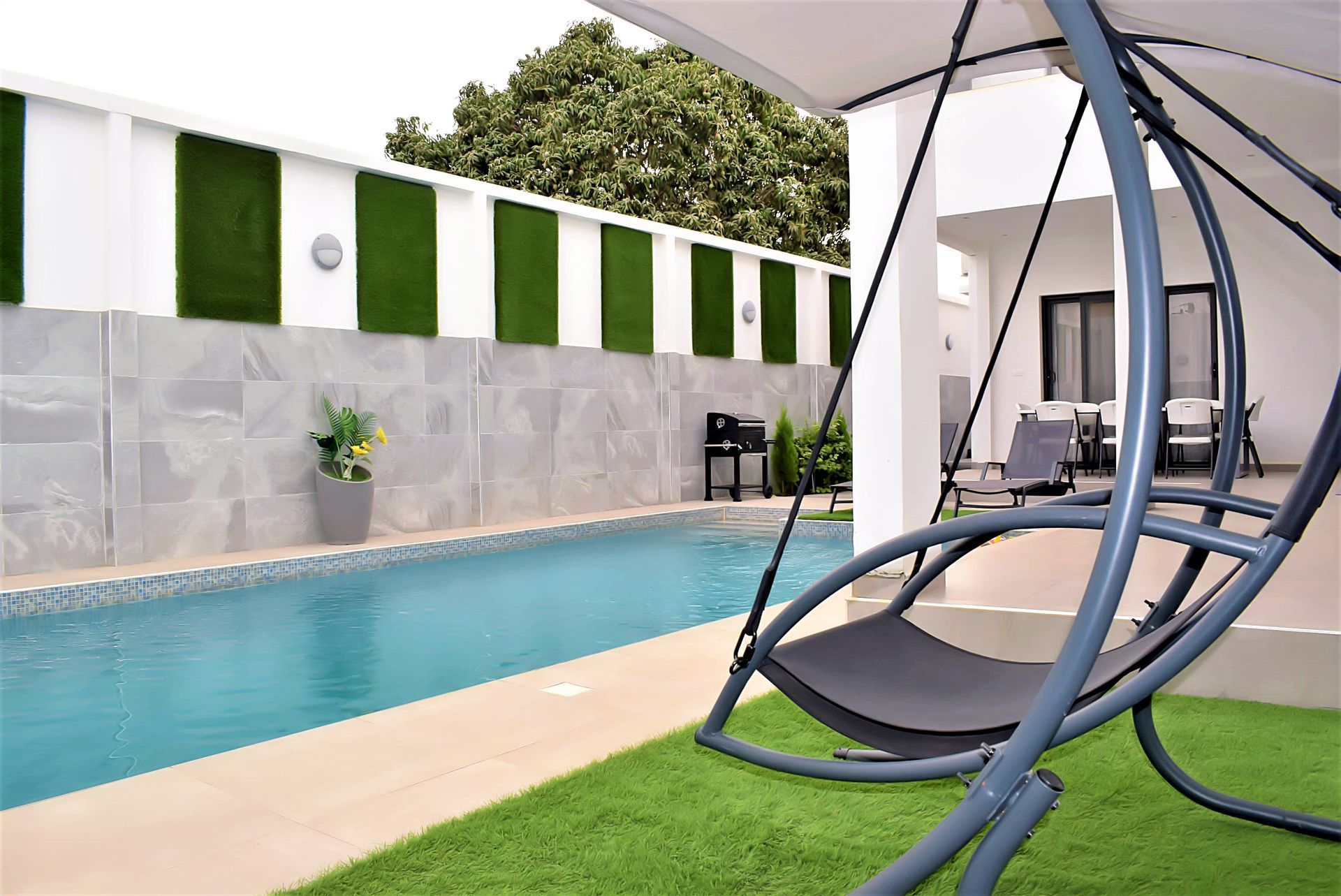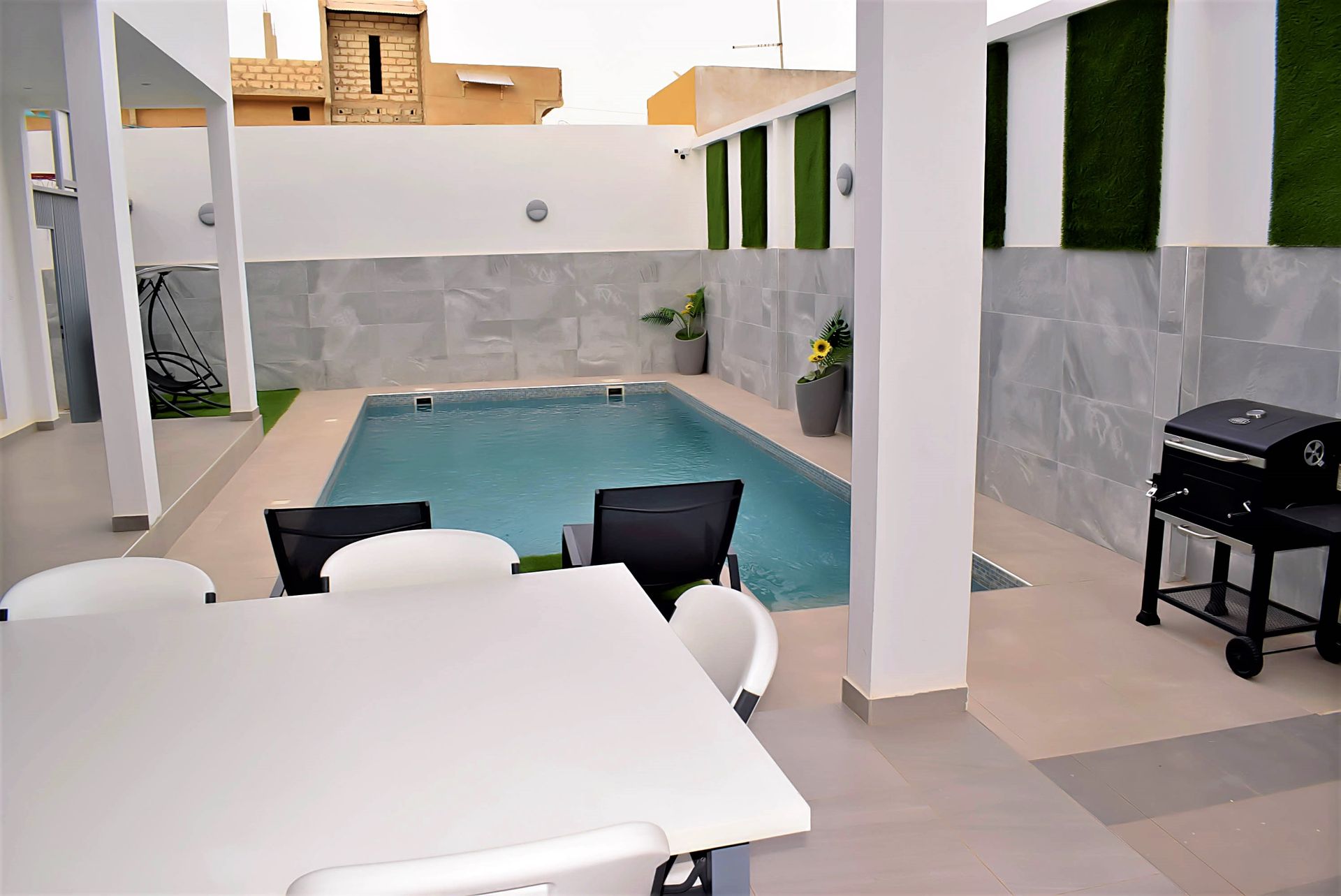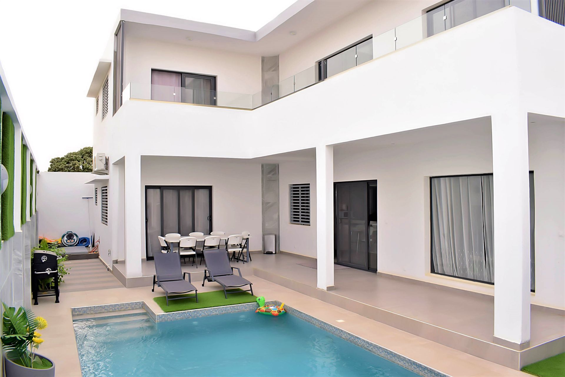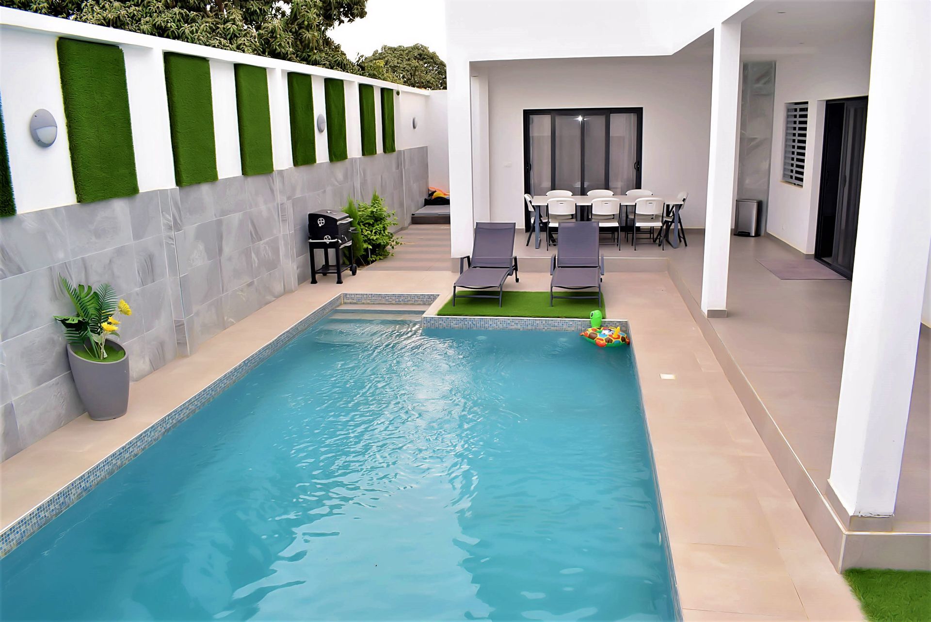 🏊 Profitez de la piscine pour vous rafraîchir et vous détendre sous le soleil sénégalais. De plus, un mini terrain de basket est également disponible pour les amateurs de sport.
