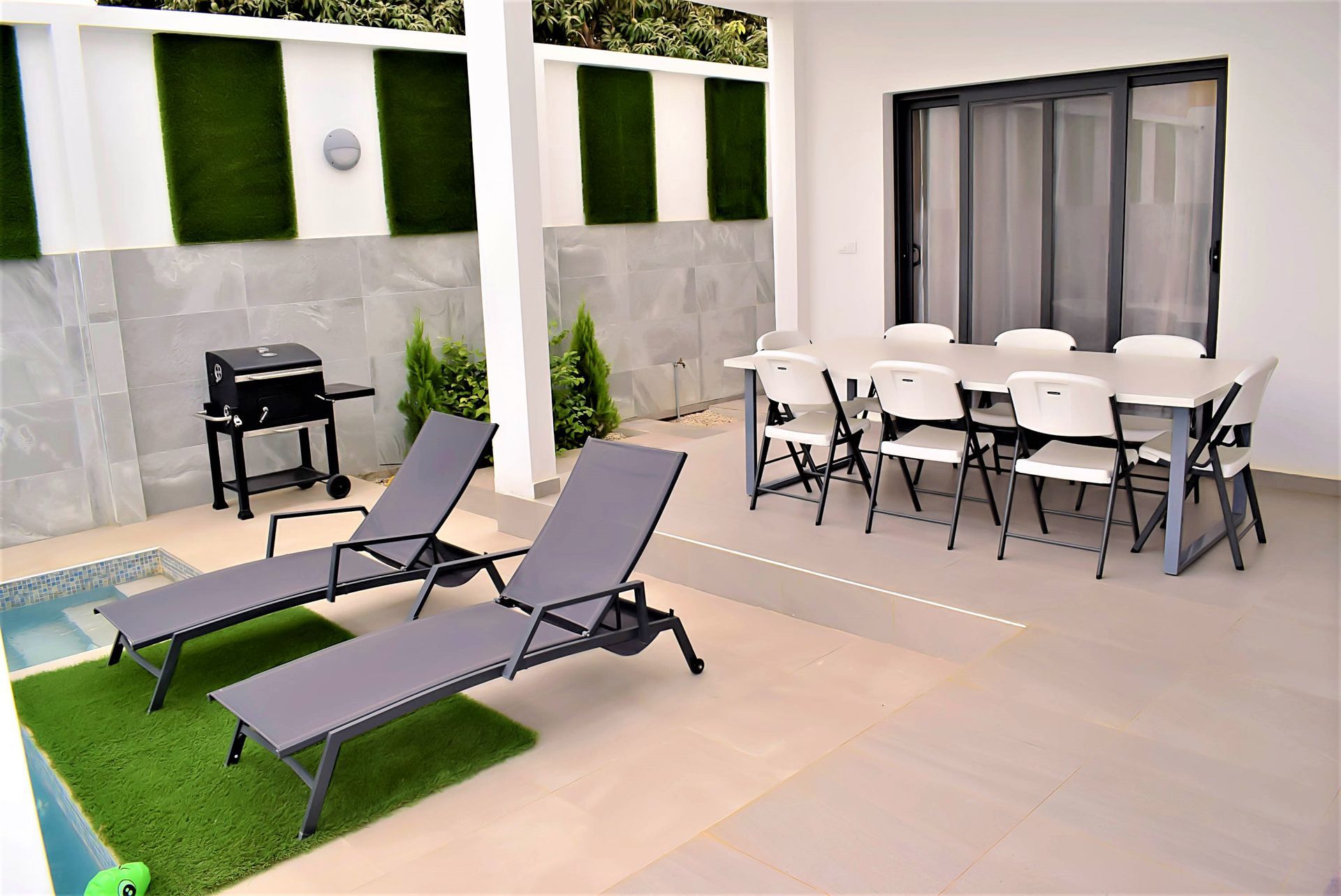 🏡 Cette magnifique villa compte 4 chambres, chacune avec sa propre salle de bain et dressing. Vous bénéficierez d'un espace privé et confortable pour toute votre famille ou vos amis.