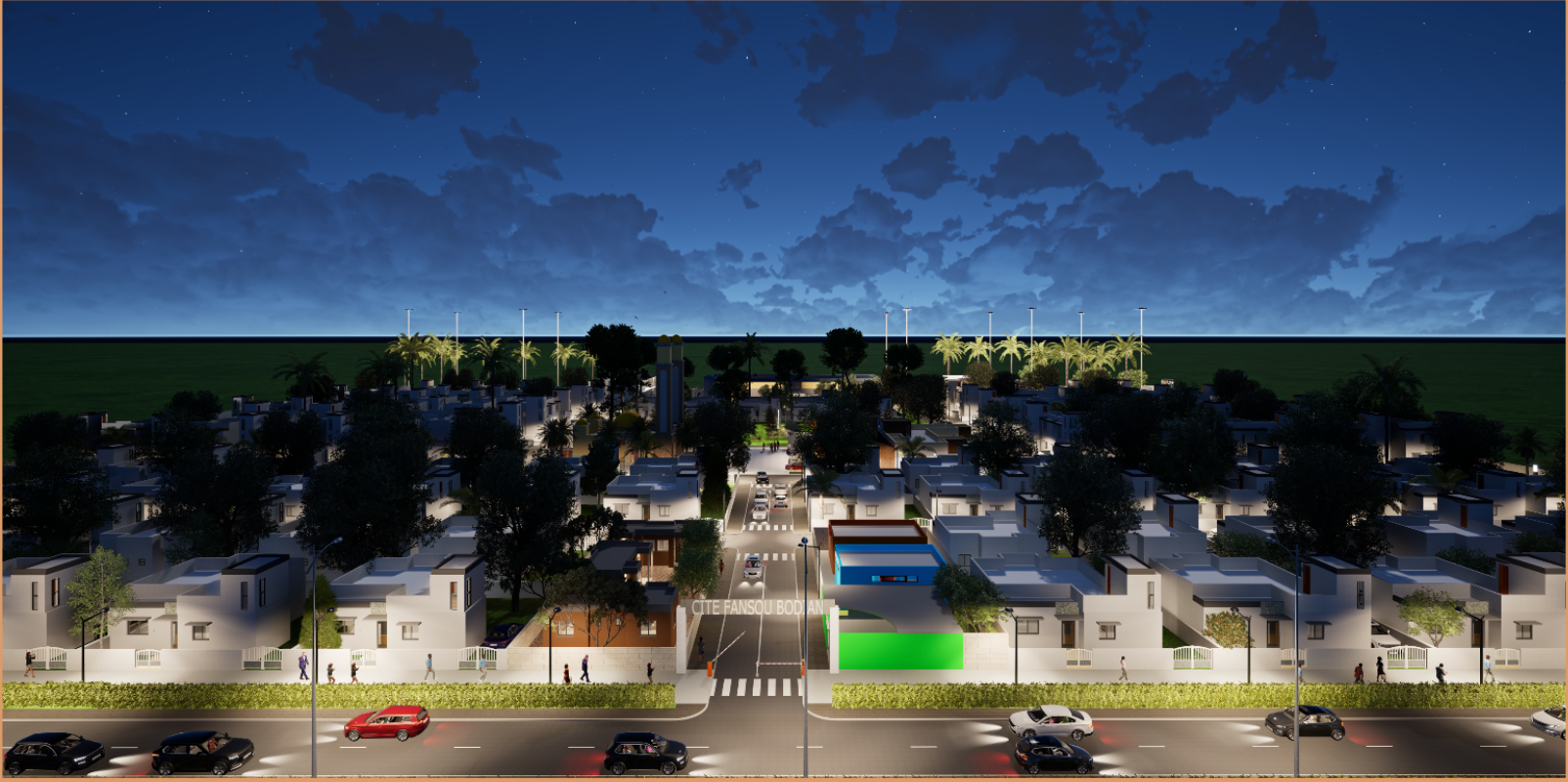 Située à Thiafoura, Guéréo, sur la Petite Côte sénégalaise, la Cité Fansou Bodian est un projet immobilier ambitieux, conçu pour offrir aux Sénégalais d’ici et de la diaspora à revenus modérés un cadre de vie moderne, sécurisé et convivial, alliant confort, fonctionnalité et qualité architecturale.